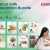 The Breastfeeding & Lactation Bundle includes 8 recipe books (800+ recipes) covering juices, smoothies, salads, veg & non-veg meals, vegan options, and healthy treats designed for lactating mothers.