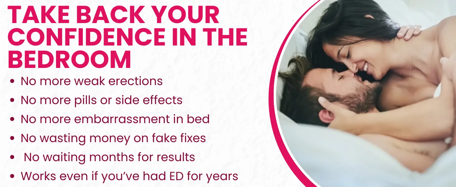 Erectile dysfunction drains confidence, ruins intimacy, and damages relationships. Pills may give a quick fix but make you dependent. You deserve a permanent, natural solution.