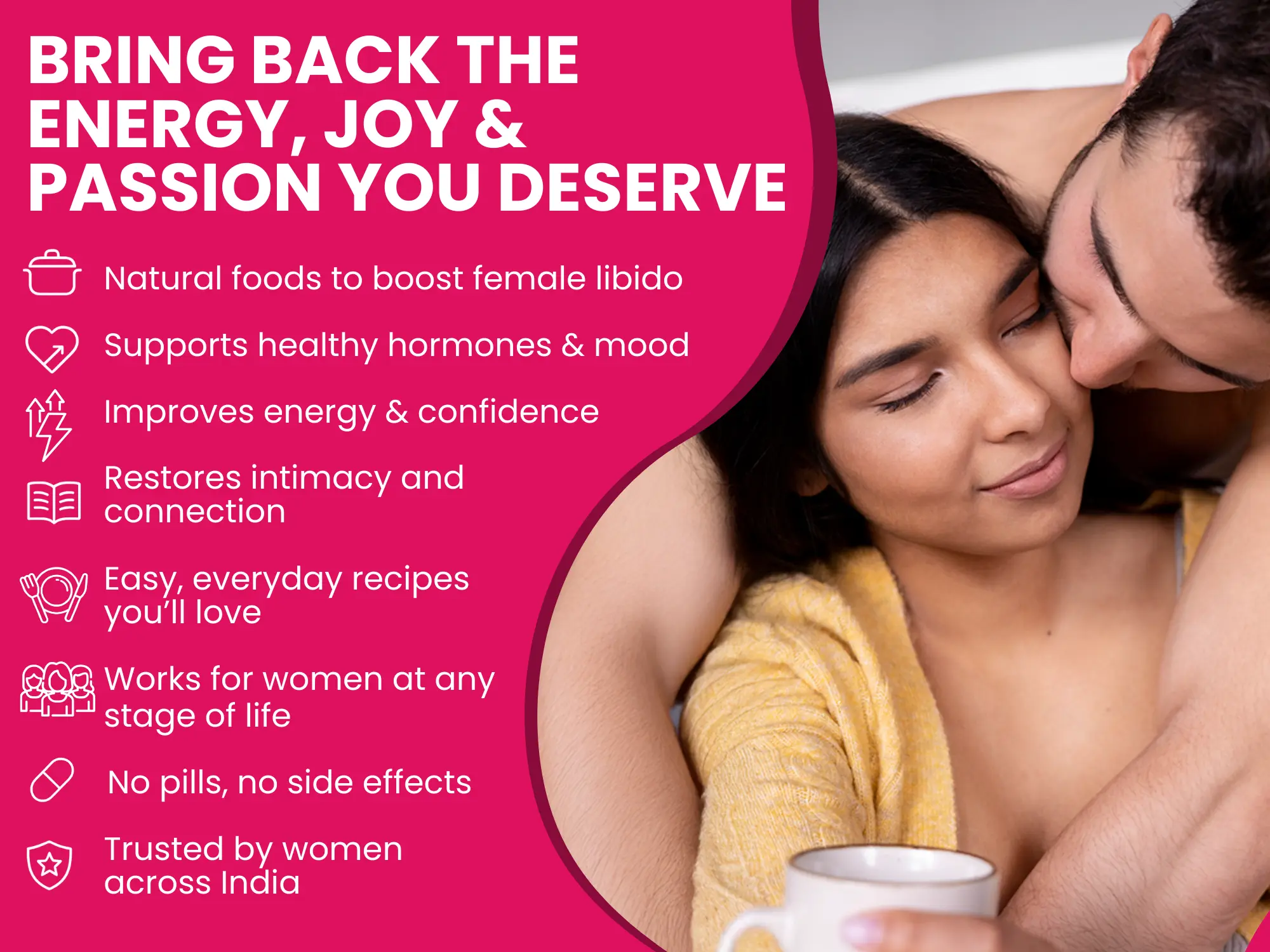This exclusive eBook delivers 100 vegetarian main course recipes crafted with natural, libido-boosting ingredients to restore vitality, support mood, and help you feel confident and attractive again.